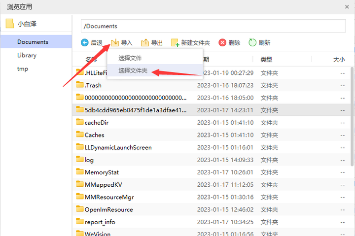 点击如上图所示薇信「浏览」,进入薇信程序下「Documents」。