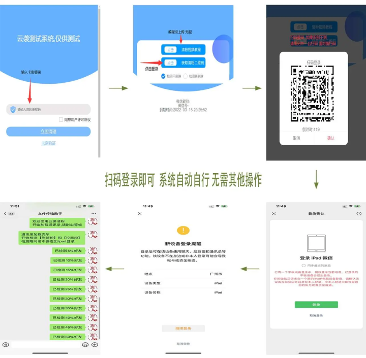 1.云端软件不支持截图扫码,必须是对着扫,这需要你有两个设备,一台打开网站,输入激活码,选择清理模式,一台扫码登录使用。