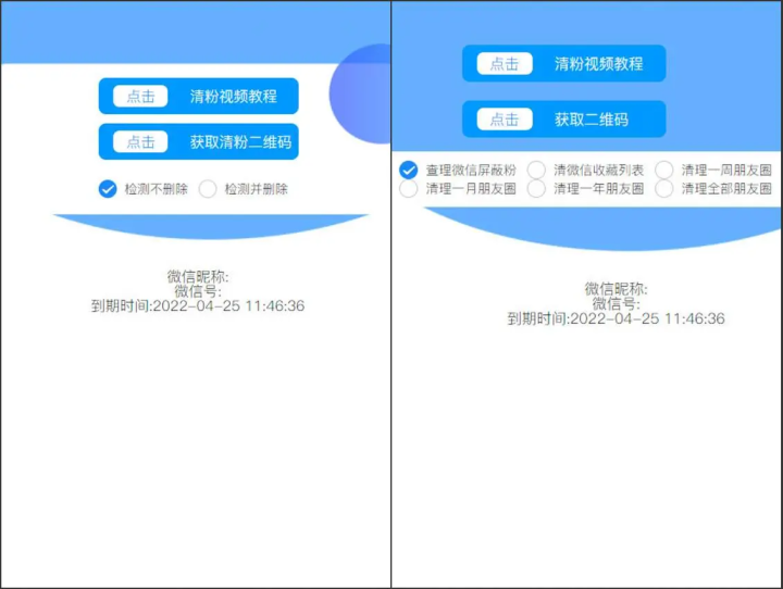 如果没有两台设备,可以在商城官方微信助手那里使用任意辅助软件,官方辅助软件都带有清粉功能的,软件下载可以试用一天的,在软件的个人中心那里获取,实在找不到就直接联系软件里面的在线人工客服。