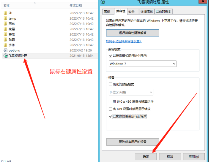如上图所示,先右键属性设置管理员模式点确定后再打开软件输入卡密后点登录挂着打开边缘封包后会出现一个程序,那个程序不要动,一直挂着就行,然后打开飞雪剪辑即可,如果打开封包没有出现一个程序的情况下打开飞雪剪辑会弹出登录界面,登录不上去的,说明下载或者解压的时候文件缺少东西了,一定要在关闭了杀毒的情况下下载软件。