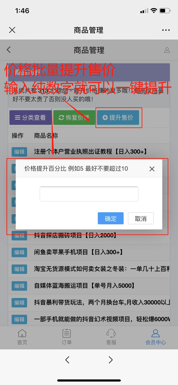 (5).在此处可以一键提升商品售价,这个商品价格是可以自定义批量调价的,