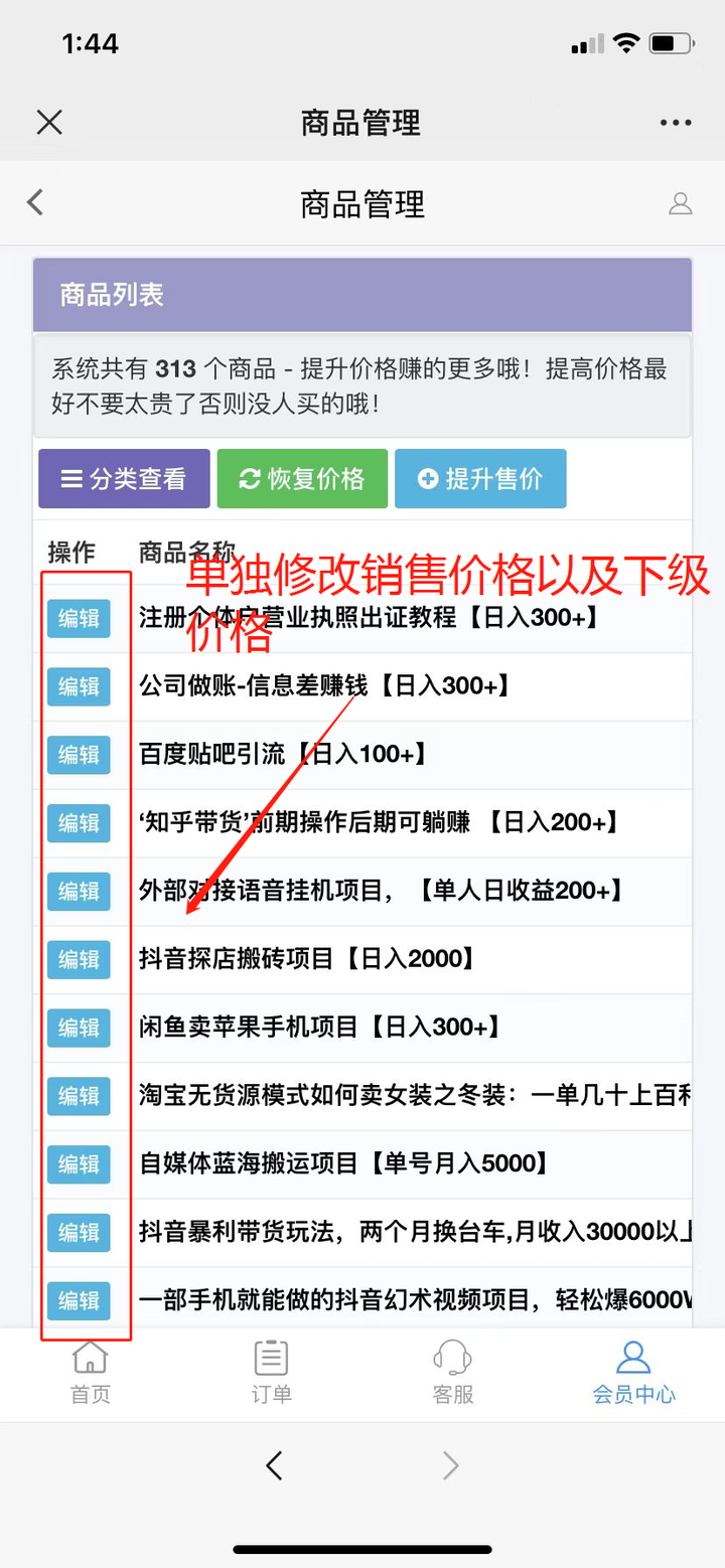 如果需要单独调价,可以点击商品左侧的编辑按钮,单独调整商品售价!