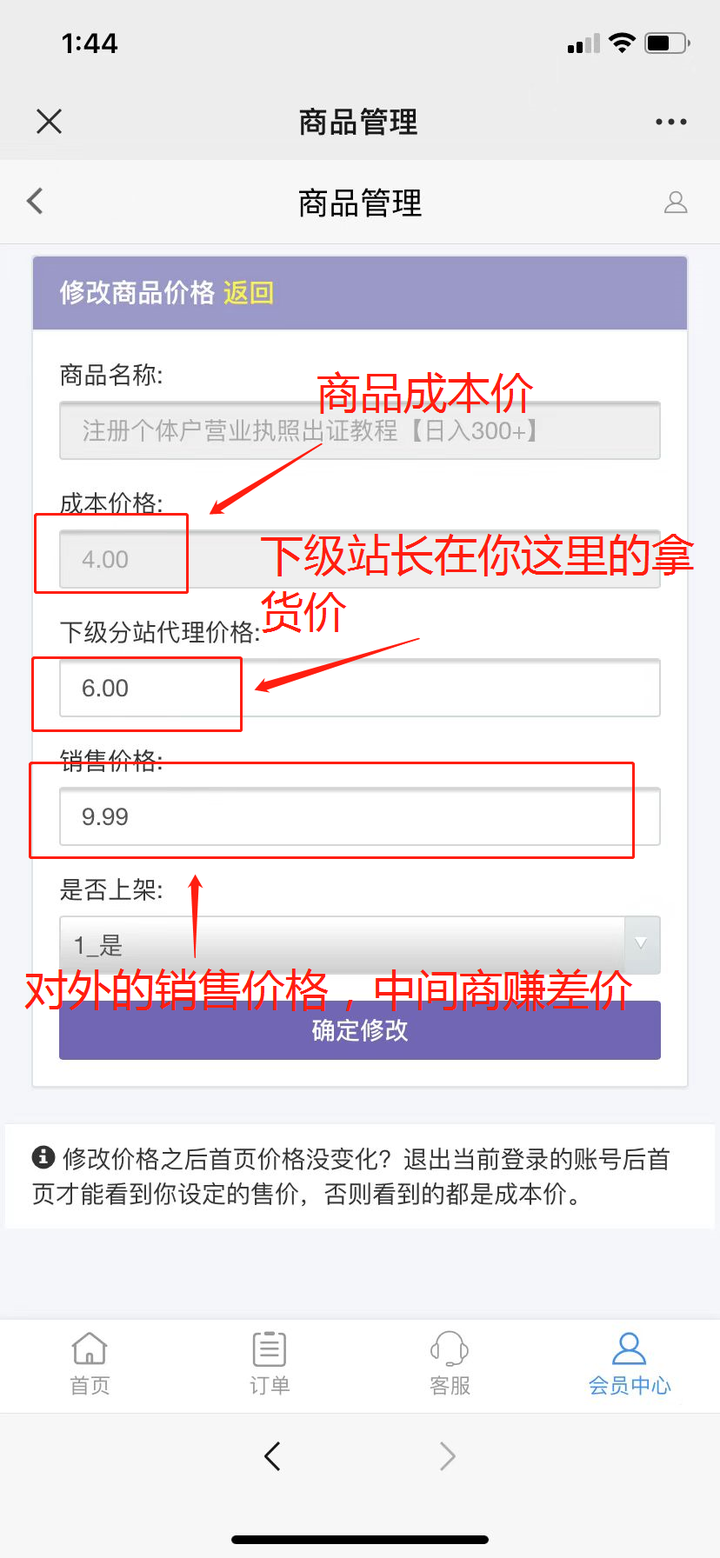 在个人中心-系统设置-网站信息设置,进入后可以修改网站基础信息及下级分站的站长会员加盟价格!