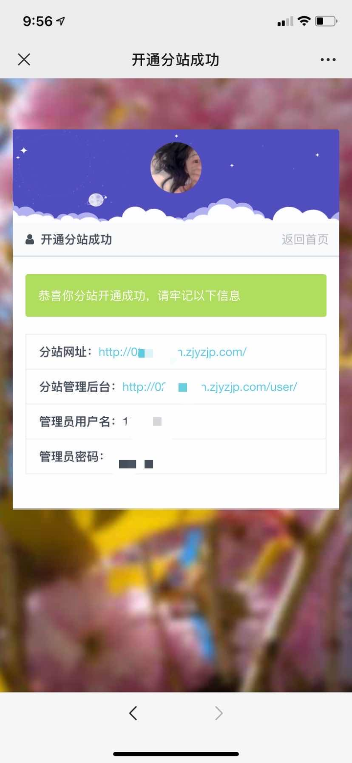 (3).按照开通分站的步骤购买开启后,会显示出你的网站的网址和管理后台,把这些复制保存下来,自己备份一下,避免遗忘。