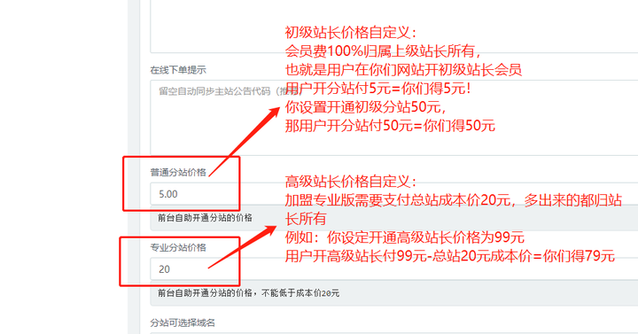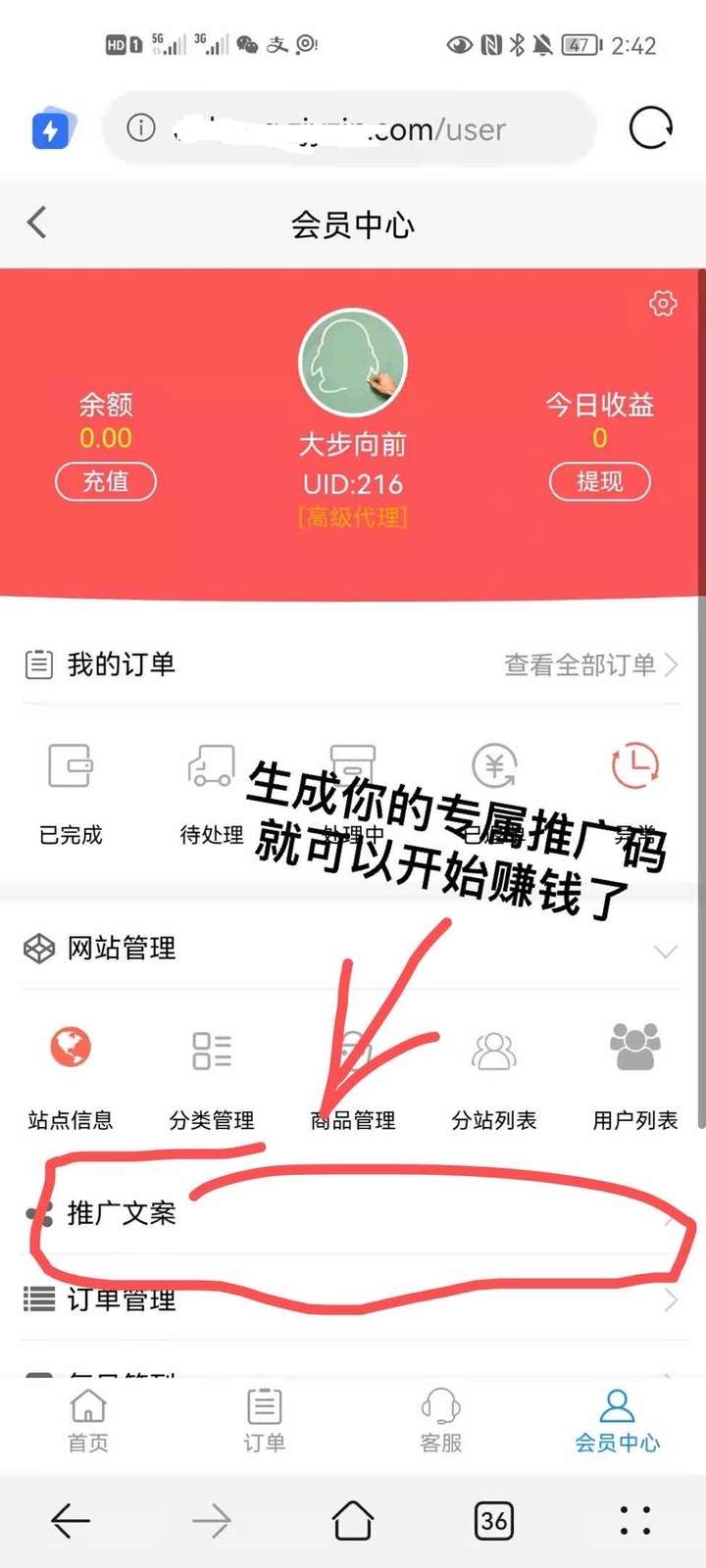 6,高级站长可以无限添加开通分站,随时随地赚钱