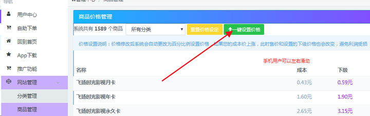 首先登录到分站,选择商品管理,选择一键设置价格