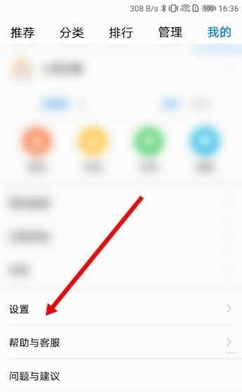 第三步:紧接着我们在个人中心界面找到设置这个选项,点击之后可以打开应用市场相关的设置界面(如图所示)。