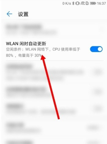 第四步:在设置界面的选项中就可以看到有WLAN闲时自动更新这个功能了,此时开关是开启的,表示会进行自动更新操作(如图所示)。