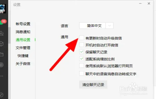 5. 第四步最后我们取消勾选【有更新时自动升级微信】就可以了。