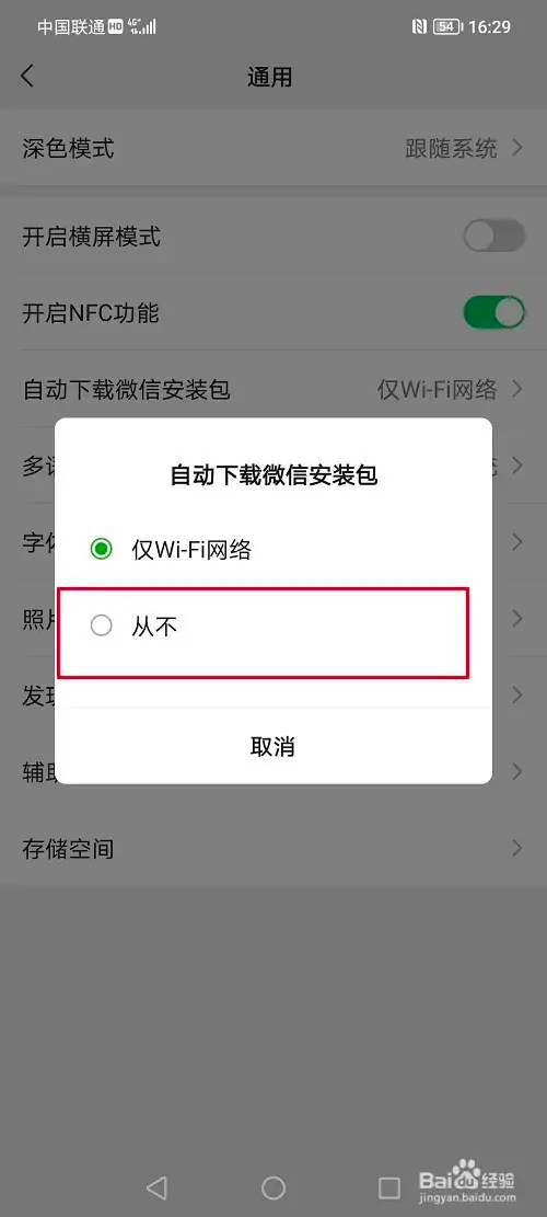 4. 第四步点击自动下载微信安装包之后,选择从不