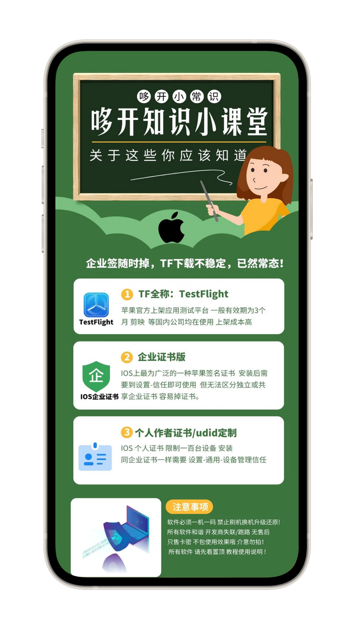 A:咱们的产品特殊,无法通过苹果应用商店进行上架。但苹果严格的审核制度不像安卓那样可以用安装包安装,所以需要通过苹果TF测试商店给大家下载,这个是给开发人员分发软件用的,放心!这个TF商店的兑换码兑换的APP有效期90天,但你不用担心,是苹果的设定罢了和产品激活无关,90天后重新下载即可。但开发者账号稀缺,所以为了控制成本只能收【TF兑换码】费用了。