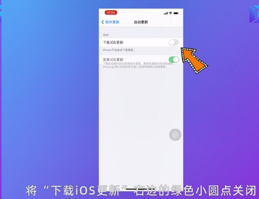然后在自动更新界面将“下载iOS更新”右边的绿色小圆点关闭让它变成白色即可。