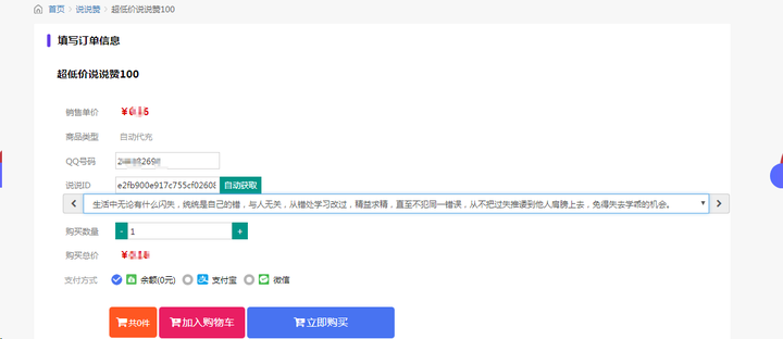 如果当前商城获取不到ID,可以用右侧链接获取,然后复制到下单框填写QQ号后系统会自动获取说说ID,点一下自动获取即可,然后选择下单的说说即可。