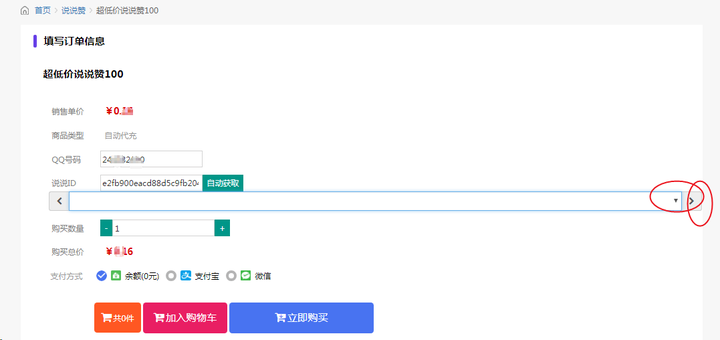 点红圈处选择要下单的说说