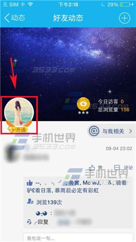 1)首先打开手机QQ,点击【动态】,点击【好友动态】,点击自己【账号头像】。(如下图)