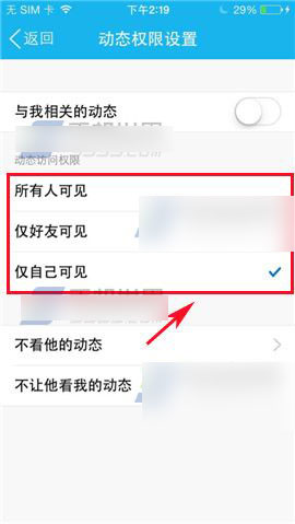 2)在右上方点击【设置图标】,进入界面可以选择所有人可见、仅好友可见和仅自己可见,点击你要选择的一项即可。(如下图)